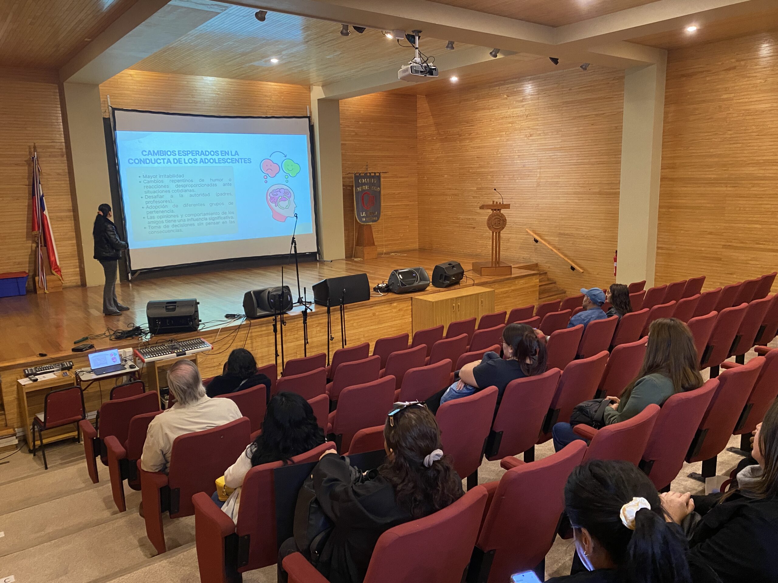 El lunes 20 de abril, previo a las reuniones de apoderados, se realizó una charla dirigida a familias de I y II medios sobre factores protectores y de riesgo asociados al desarrollo adolescente.