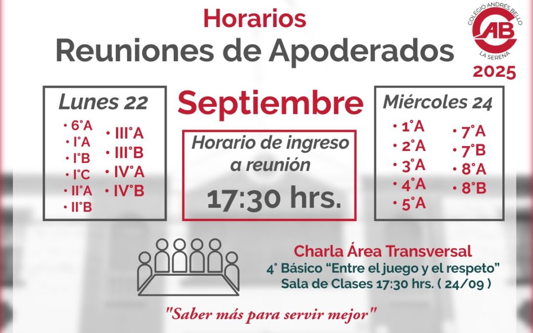Estimada comunidad Andresiana: Junto con saludarlos se adjunta distribución reuniones de apoderados mes de Septiembre 2025.