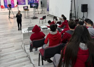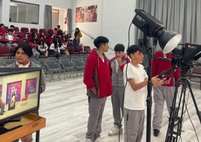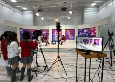 La actividad incluyó un recorrido guiado por ambas instalaciones. Un grupo de estudiantes visitó primero la radio universitaria, mientras que el otro recorrió el estudio de televisión. En ambos espacios pudieron aprender sobre las tecnologías utilizadas, fotografiar los equipos y manipular algunos implementos.