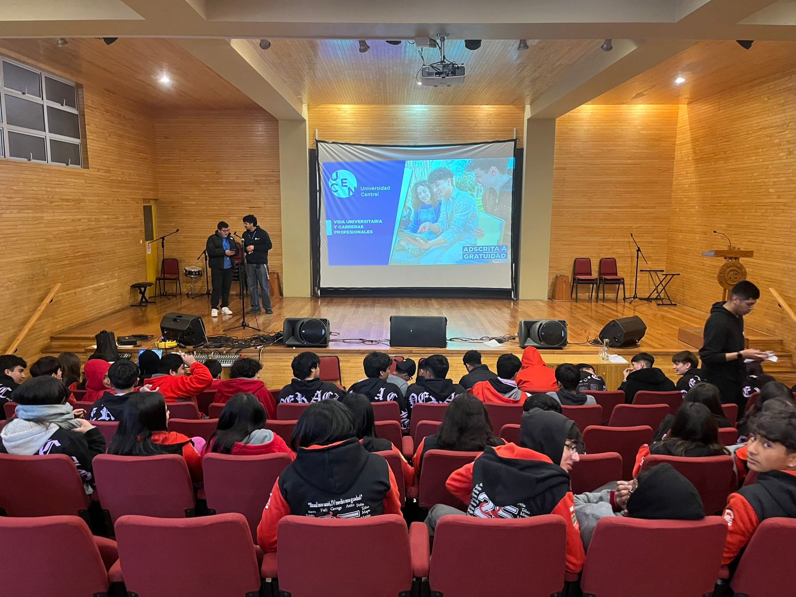 Con el propósito de ofrecer un espacio de diálogo y orientación, la Universidad Central visitó el colegio para conversar con los y las estudiantes de IV° medio sobre la experiencia de la vida universitaria. En la actividad, se abordó la realidad de esta etapa, compartiendo experiencias sobre el ambiente estudiantil, los desafíos del primer año y las oportunidades que brinda la educación superior. Esta instancia permitió a los estudiantes resolver dudas y prepararse mejor para la nueva etapa que comenzarán próximamente.